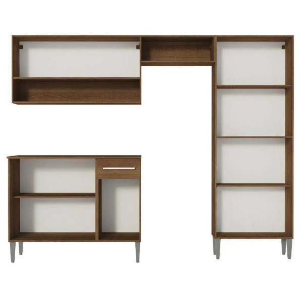 | Conteúdo da Embalagem | Um (1) Paneleiro com 4 portas, Um (1) Balcão com 3 portas, 1 gaveta e tampo, Um (1) Aéreo com 2 portas e 2 nichos |